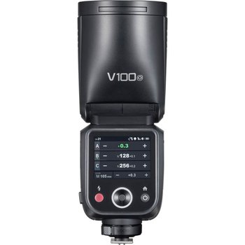 Le V100 est alimenté par une batterie lithium-ion de 7,2V/2980mAh, identique à celle du Godox V1 Pro, offrant jusqu’à 400 éclairs à pleine puissance par charge. Il se recharge facilement via USB-C et est compatible avec le chargeur multiple VC26T de Godox.