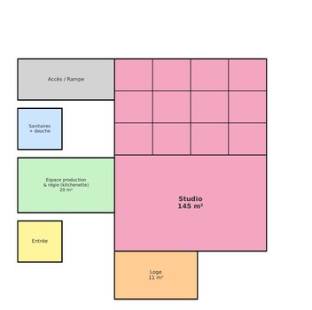 • Surface du plateau : 140 m2 – cyclorama blanc 2 faces (11×7 m)